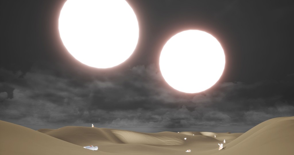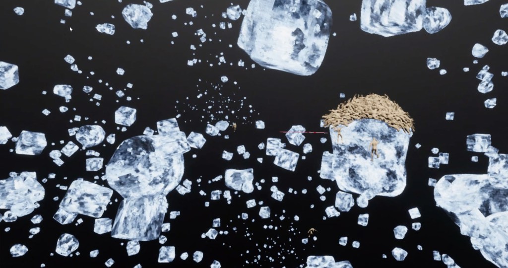 The work adopts game language attempting to construct a fragmented narrative within an immersive environment to provide the perspective from “others”, which arouses attention to the future ecology and the reflection on human subjectivity. There are seven virtual scenes where participants’ different decisions and routes will generate diverse experiences, interpreting multiple narratives.